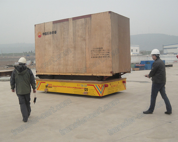 Industriellen die Gummirad-batteriebetriebenen Wagen, die Selbst gefahrenen motorisierten Laufkatzen-Wagen für Porttransport, alias das elektrische Flachbett, das waagerecht ausgerichtete Auto, die Laufkatze, der Überspannenwagen, der elektrische Schienenwagen, der kletternde Grundwagen, etc., ist ein innerbetrieblicher Elektrotransporter. Die batteriebetriebenen industriellen Wagen, ist es eine spurlos Art Transportfahrzeug. Es braucht nicht, Bahn aus den Grund zu legen. Es ist auch ein Elektroantriebfahrzeug, das automatisch unter den Antrieb des Bewegungsreduzierers läuft.